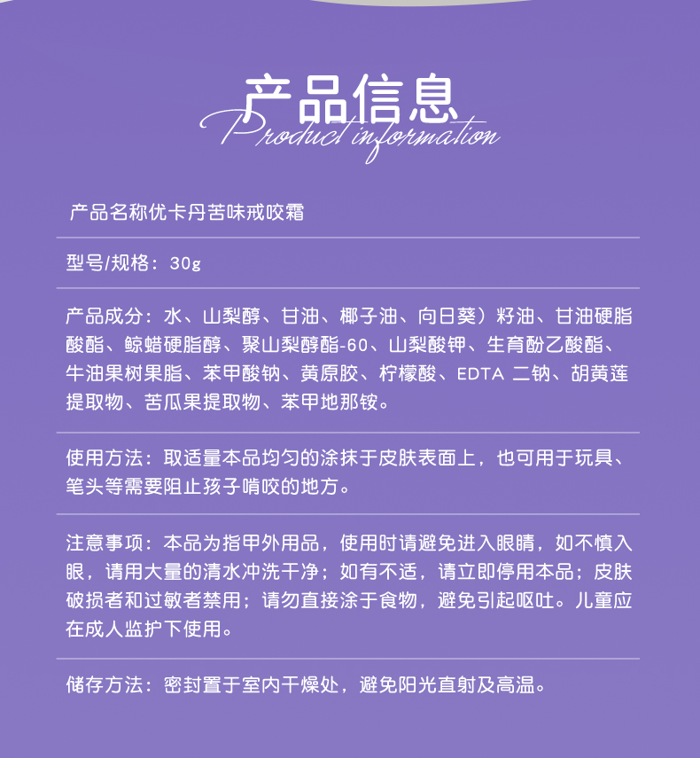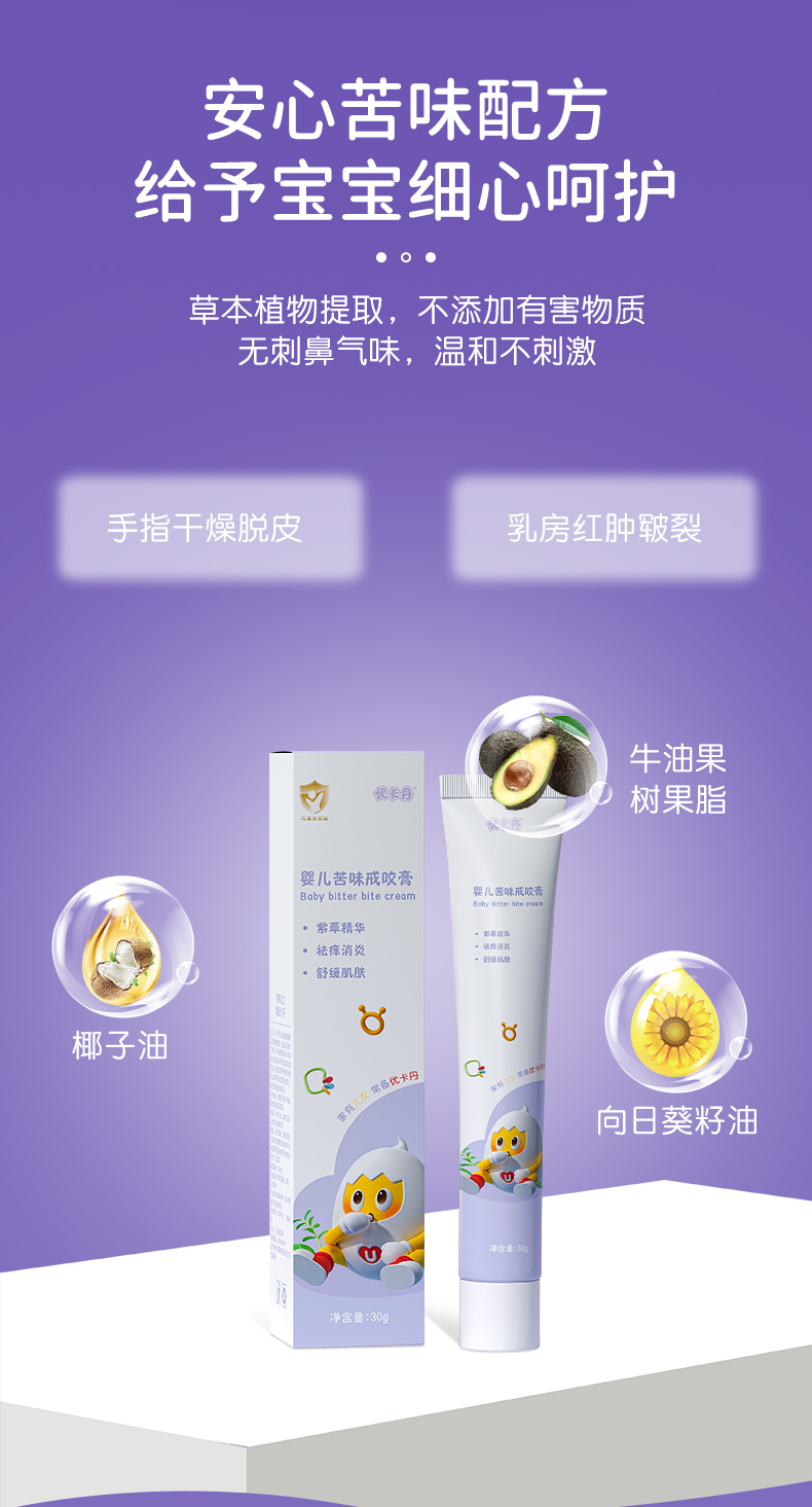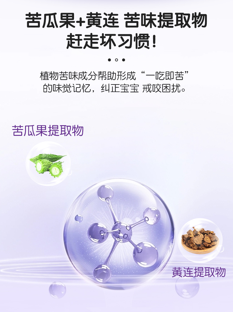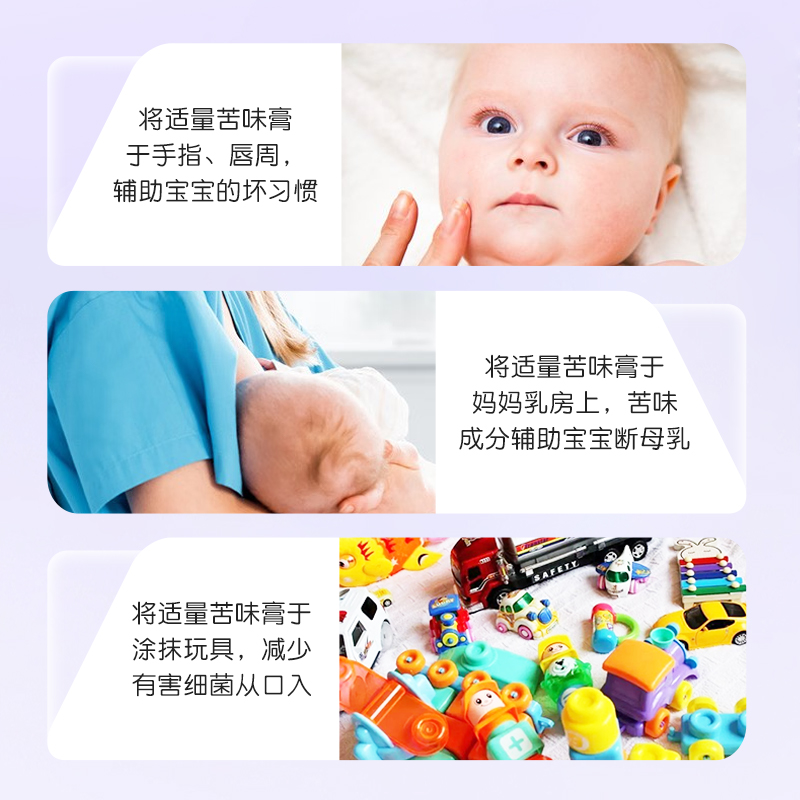 使用方法:取適量本品均勻的涂抹于皮膚表面上,也可用于玩具、筆頭等需要阻止孩子啃咬的地方。