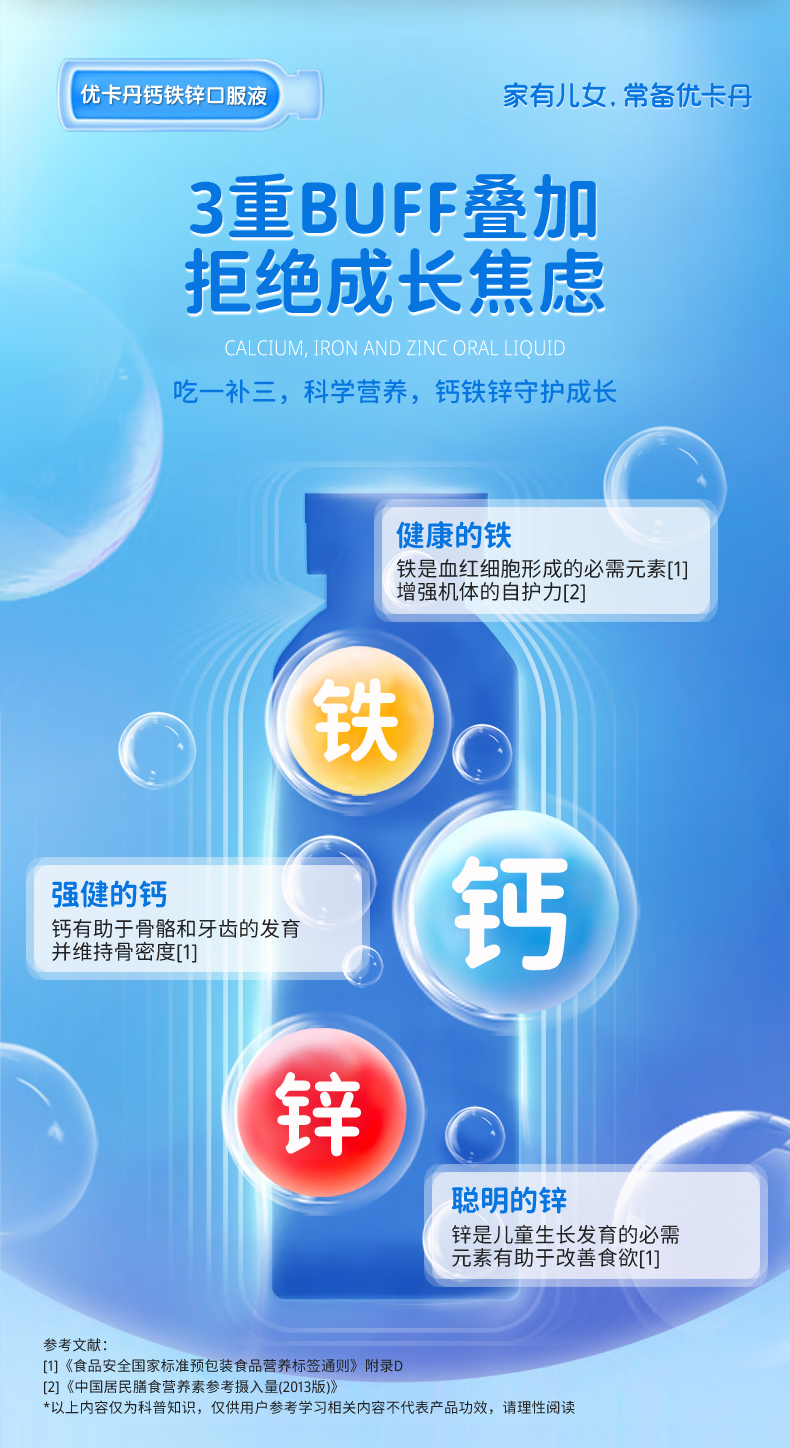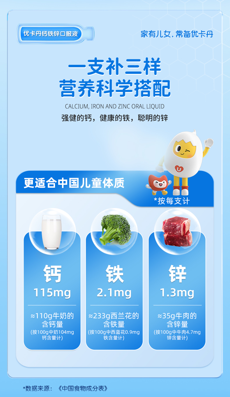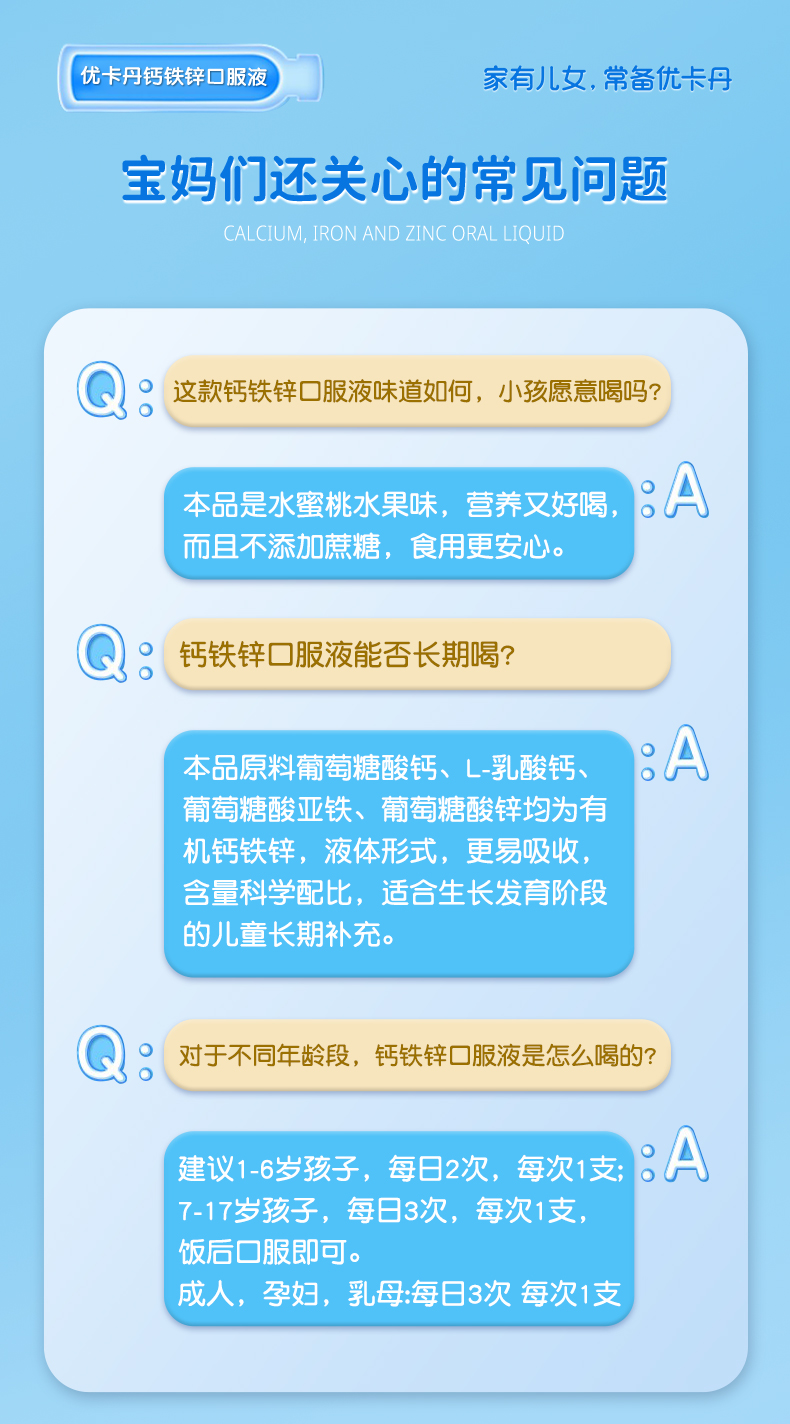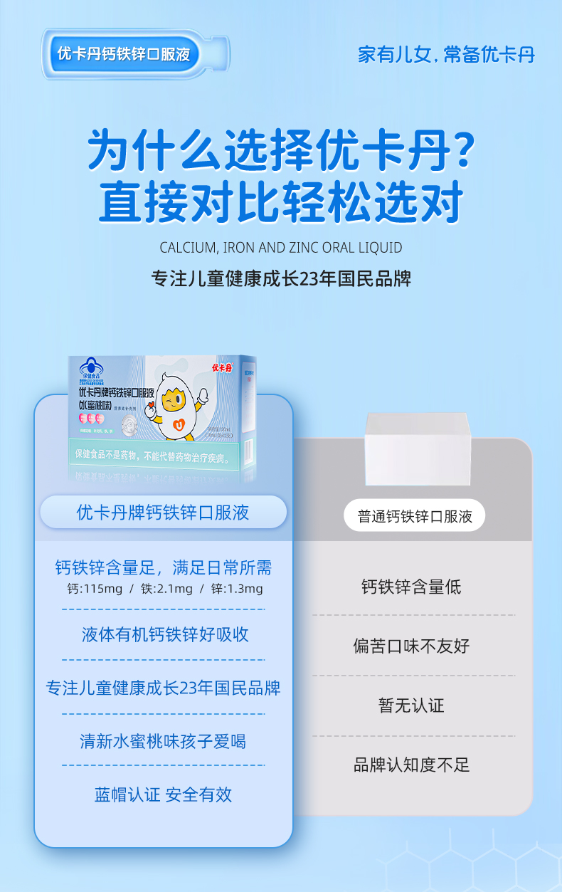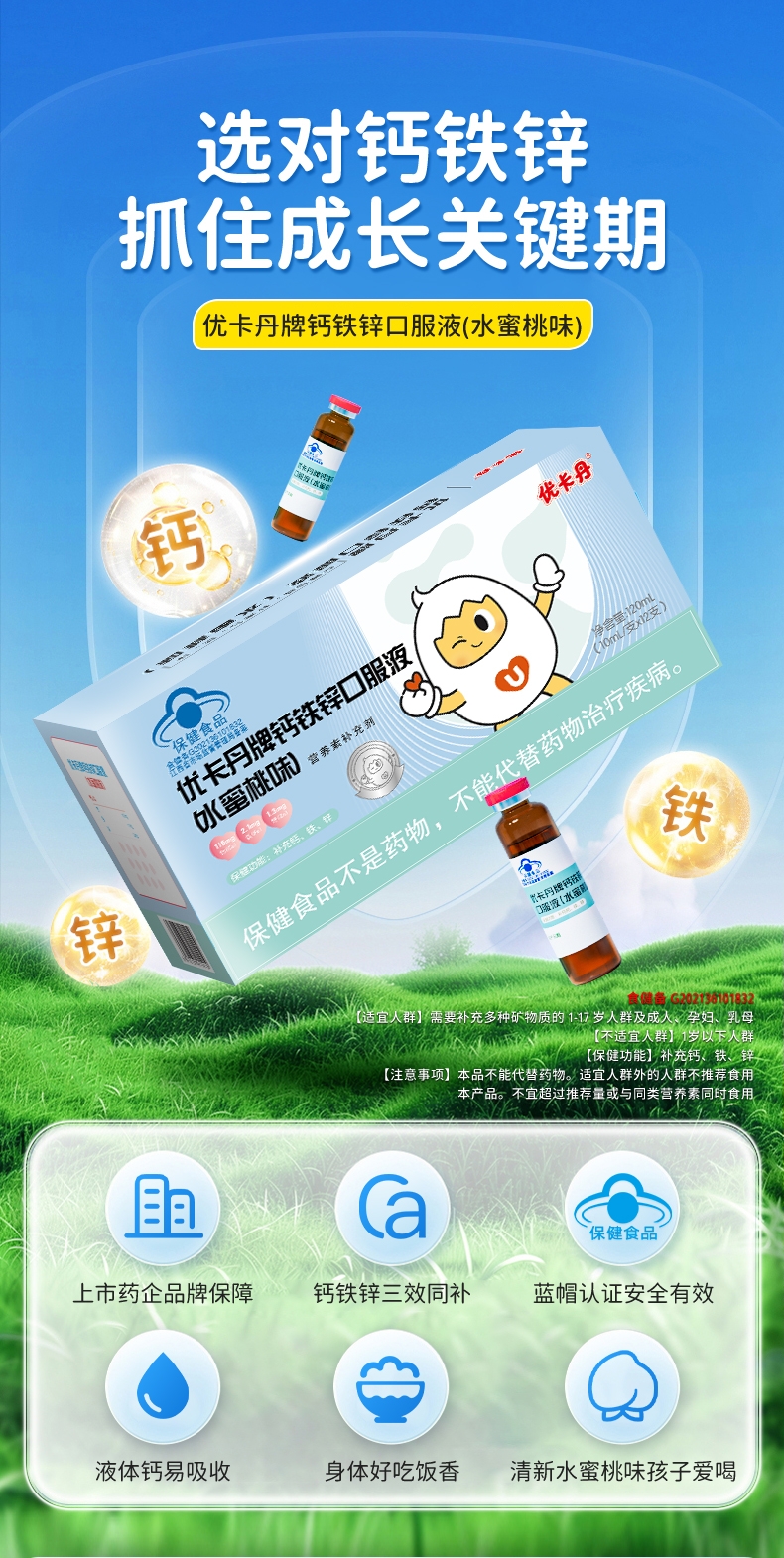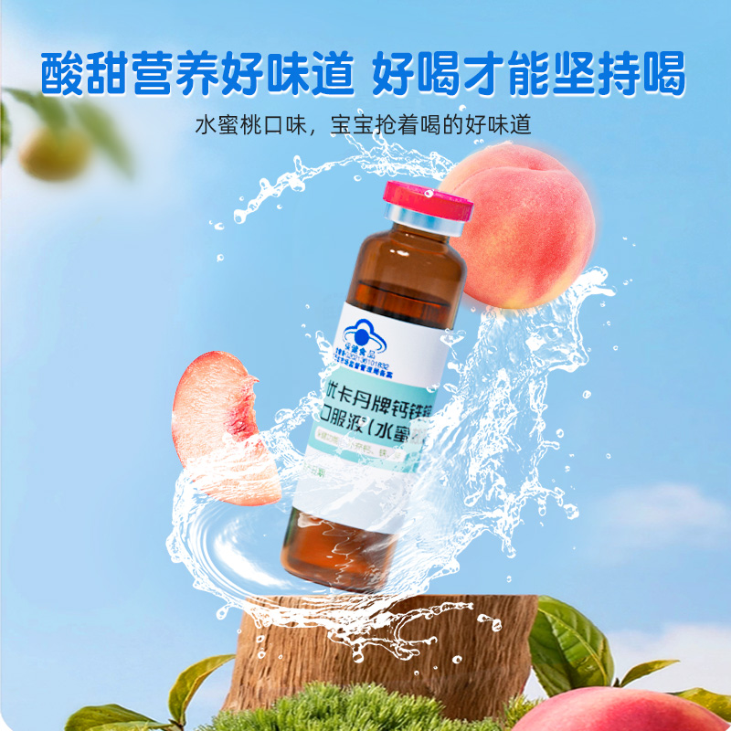 產品名稱:優卡丹牌鈣鐵鋅口服液(水蜜桃味)