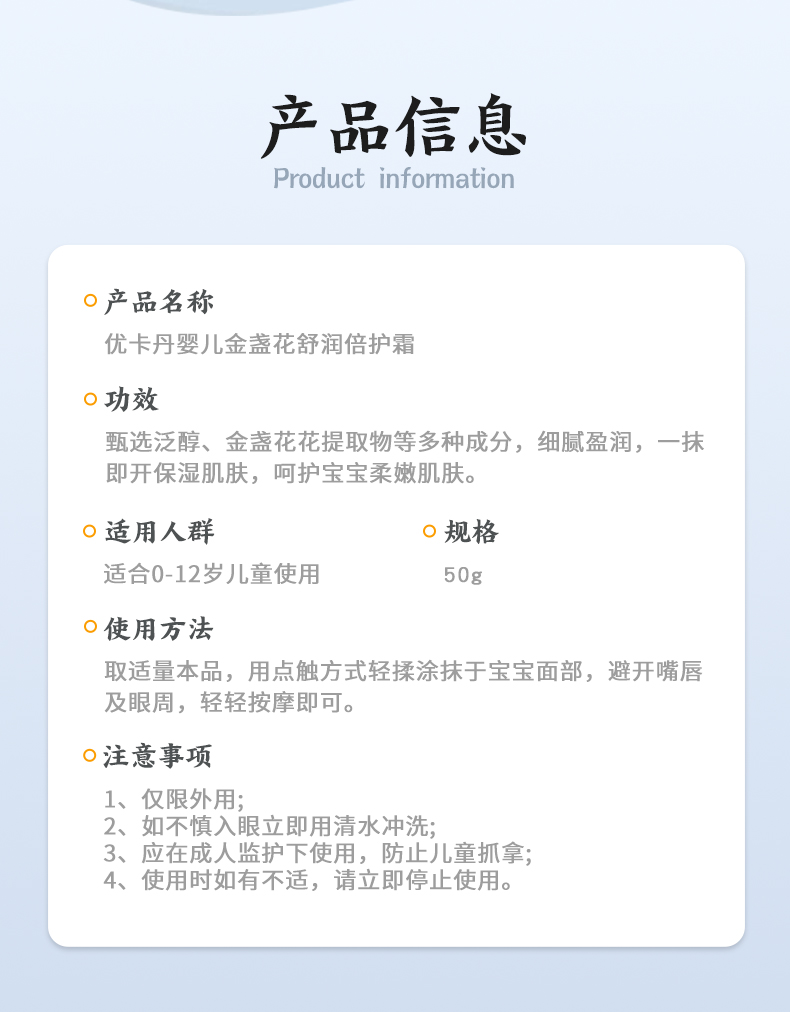 產(chǎn)品名稱:優(yōu)卡丹嬰兒金盞花舒潤(rùn)倍護(hù)霜