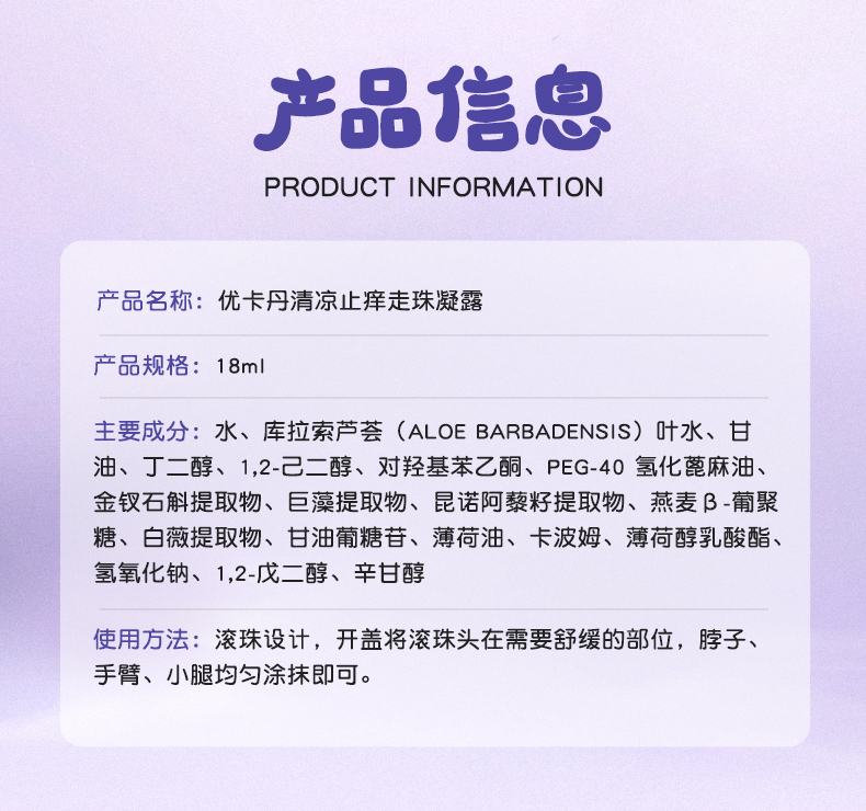 【產品名稱】優卡丹清涼止癢走珠凝露