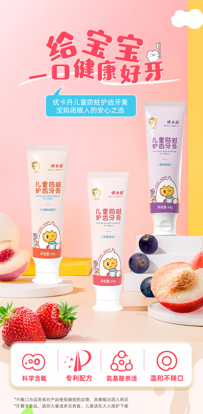 【產(chǎn)品名稱】?jī)?yōu)卡丹兒童防蛀護(hù)齒牙膏