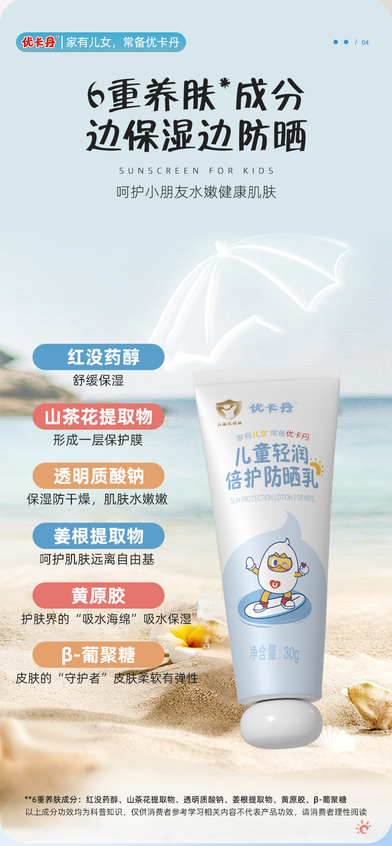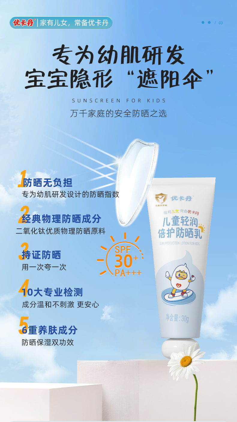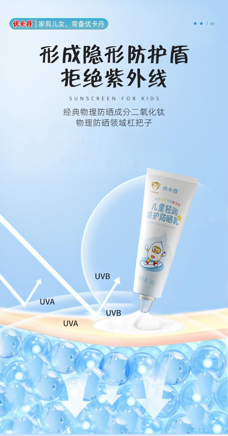 4. 優卡丹兒童輕潤倍護防曬乳 SPF30PA+ + +