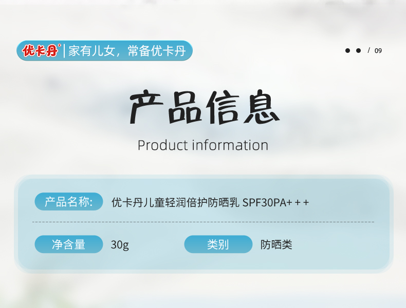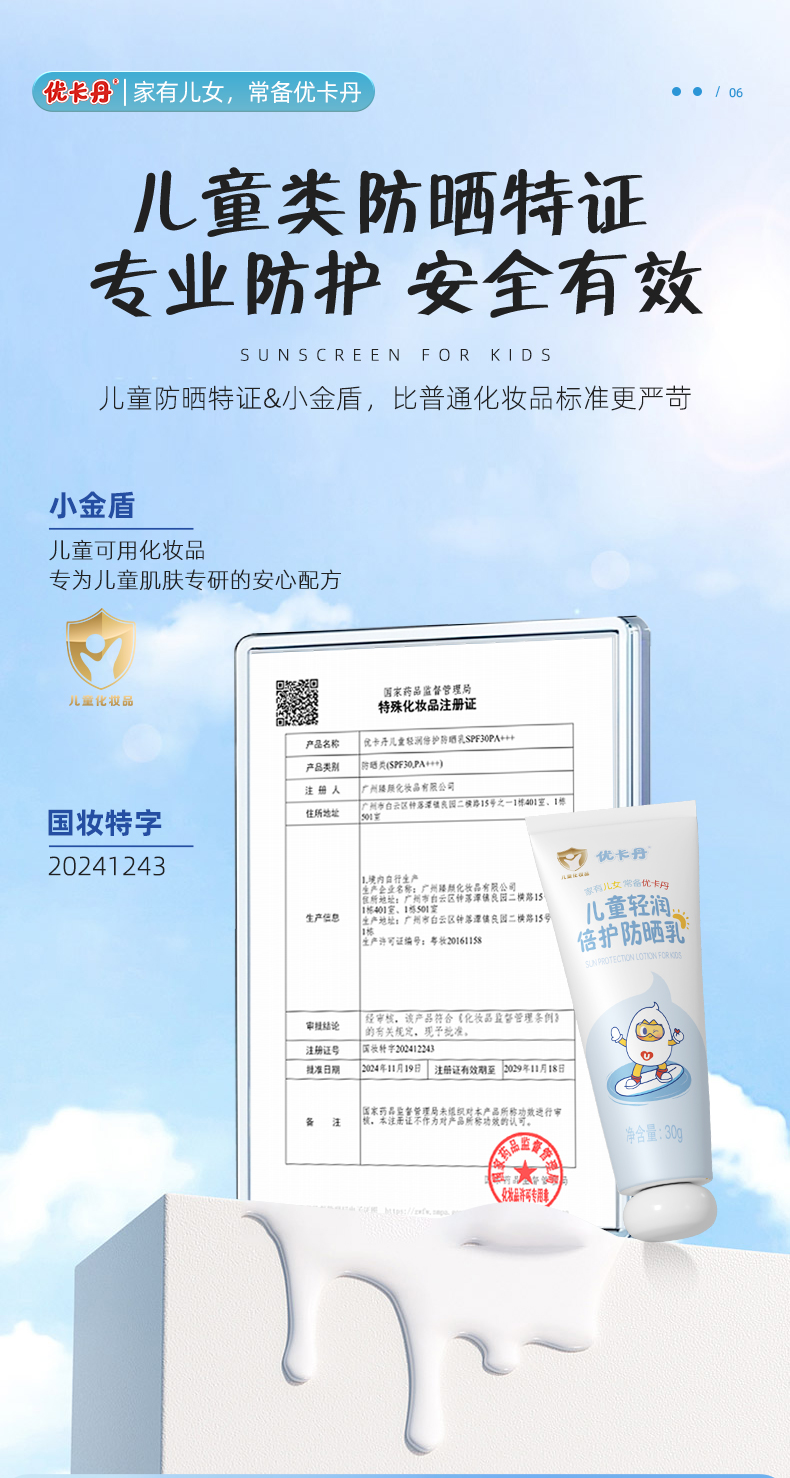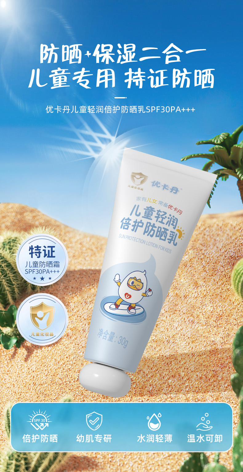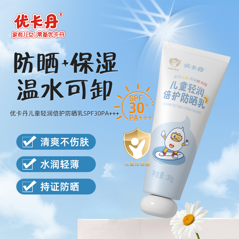 【產品名稱】優卡丹兒童輕潤倍護防曬乳 SPF30PA+ + +