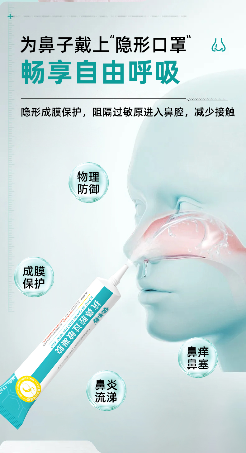 【適用范圍】該產品用于過敏性鼻炎患者,通過阻隔致病性微生物及其他顆粒性過敏物質進入鼻腔,緩解因過敏性鼻炎引發的相關癥狀。