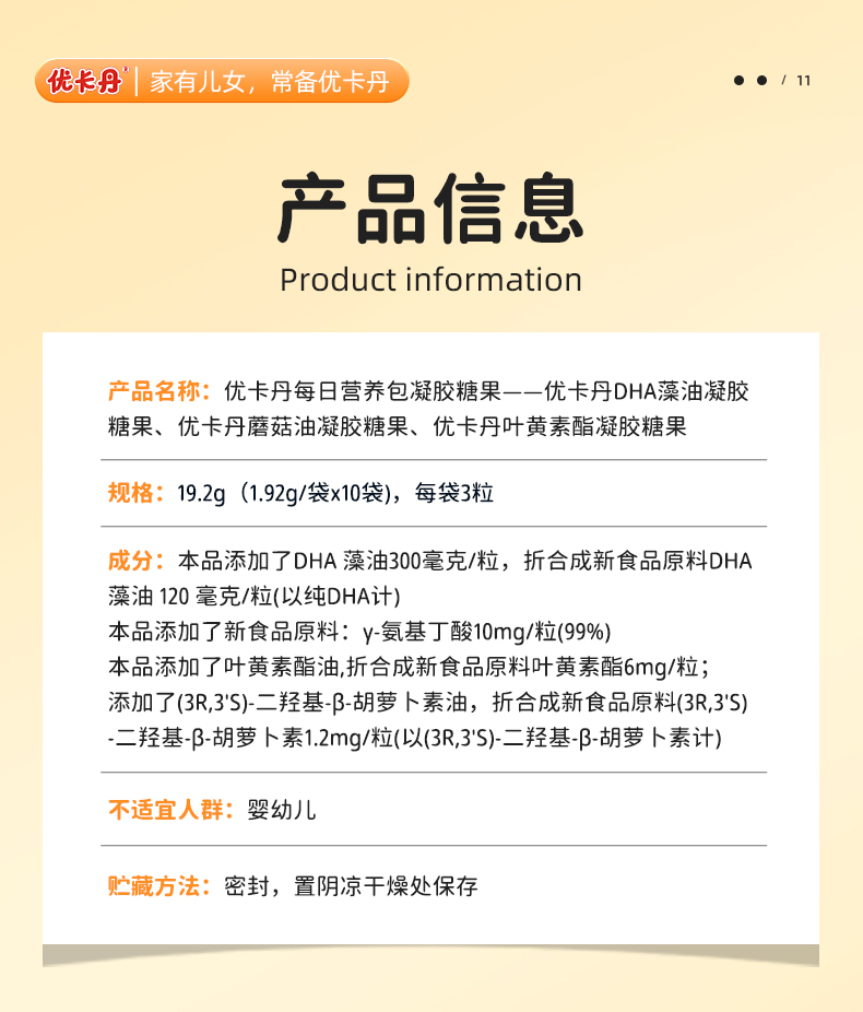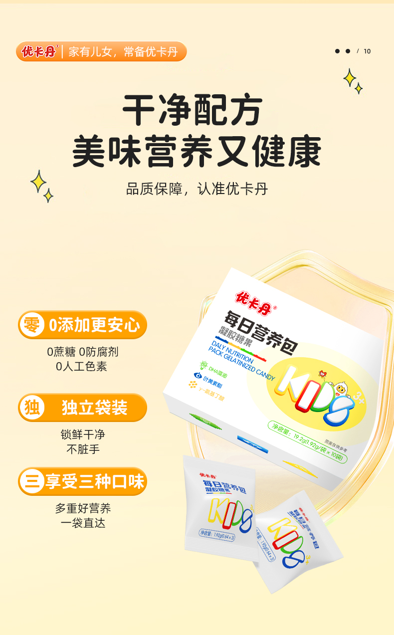 【產品名稱】優卡丹每日營養包凝膠糖果——優卡丹DHA藻油凝膠糖果、優卡丹蘑菇油凝膠糖果、優卡丹葉黃素酯凝膠糖果