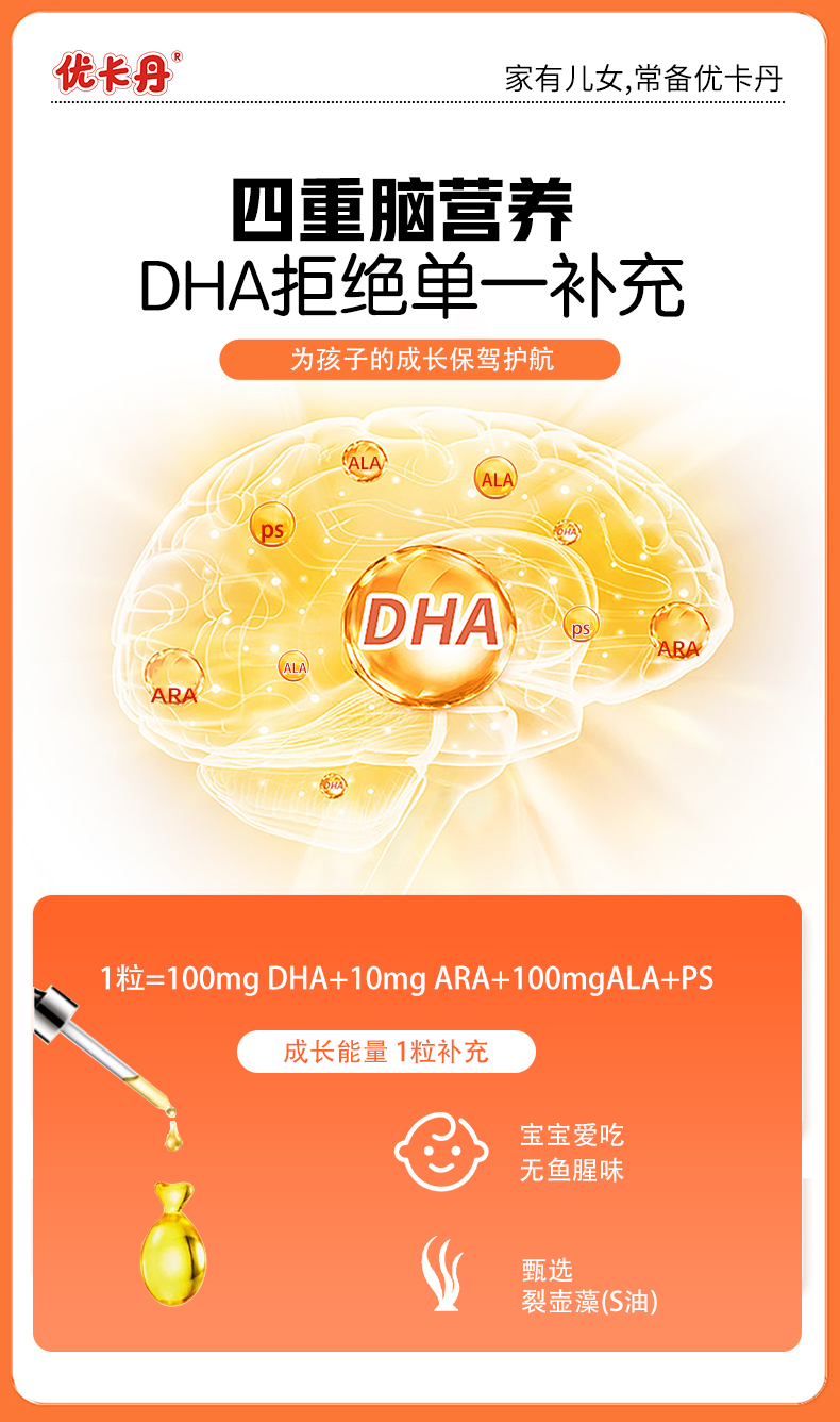 期末沖刺的關(guān)鍵時(shí)期,別讓孩子因?yàn)闋I(yíng)養(yǎng)跟不上而掉隊(duì)!選擇優(yōu)卡丹 DHA 藻油 + ARA 凝膠糖果,每天 1 粒,高含量 DHA + 美味口感 + 安全保障 + 品牌保障,全方位助力孩子輕松應(yīng)對(duì)考試,發(fā)揮出最佳水平!
