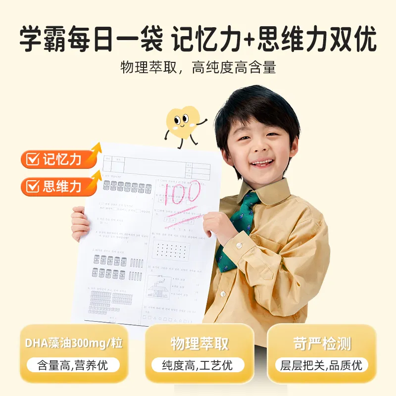 科學解析:DHA是構成大腦神經細胞的關鍵物質,堪稱“腦黃金”,它能助力神經網絡構建,讓孩子思維更敏捷,記憶更牢固。而GABA則像一位“情緒安撫師”,幫助緩解孩子的煩躁與緊張,讓他在學習時更能坐得住、聽得進、學得會。