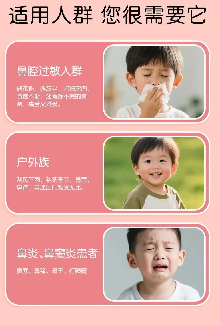 它通過穴位外敷發(fā)揮作用,成分不直接接觸鼻腔黏膜,避免了噴霧可能帶來的刺激或藥液倒流,從源頭守護(hù)孩子的呼吸舒適。